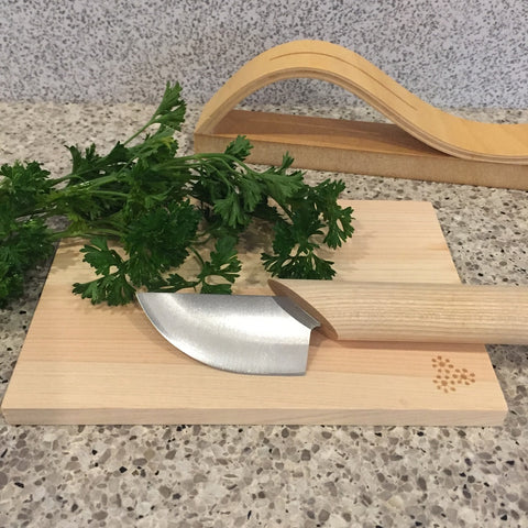 This Rocker Knife is a specially-designed by craftsman in Echizen Takefu Knife Village, curved blade which allows food to be cut with a rocking motion.